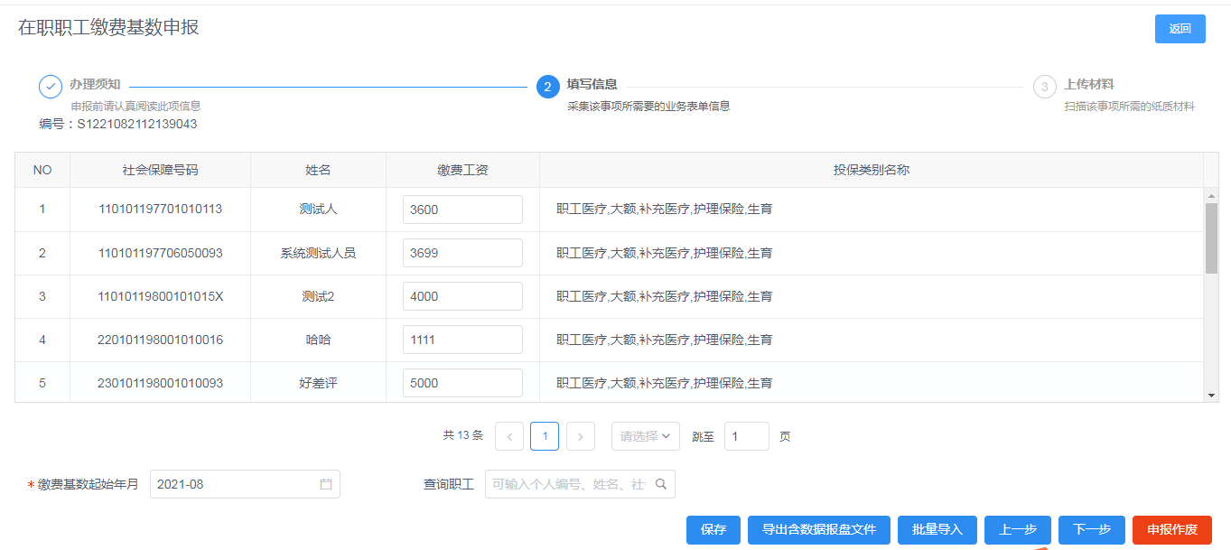 可以先下载报盘文件然后更改缴费基数上传报盘文件
